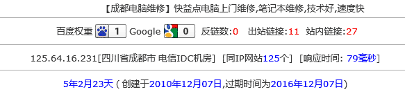 1、直接上站長工具查詢,使用的是百度提供的空間,備案老域名,速度方面是OK的
