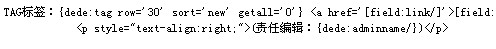 模板-默認(rèn)模板管理-選擇文章內(nèi)容頁模板article_article.htm文件在瀏覽器上。查找到{dede:field.body/}這個(gè)代碼下面TAG標(biāo)簽:{dede:tag row='30' sort='new' getall='0'} [field:tag /]{/dede:tag}